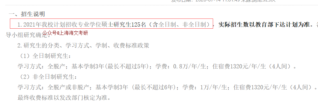 2021年我校计划招收专业学位硕士研究生125名(含全日制、非全日制),而2020年的计划招生人数仅50人,增加了75个名额。